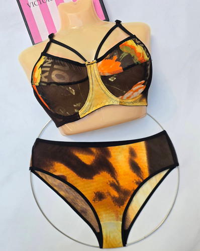 ست سوتین شورت طرح پلنگی  طلایی_ کد S4