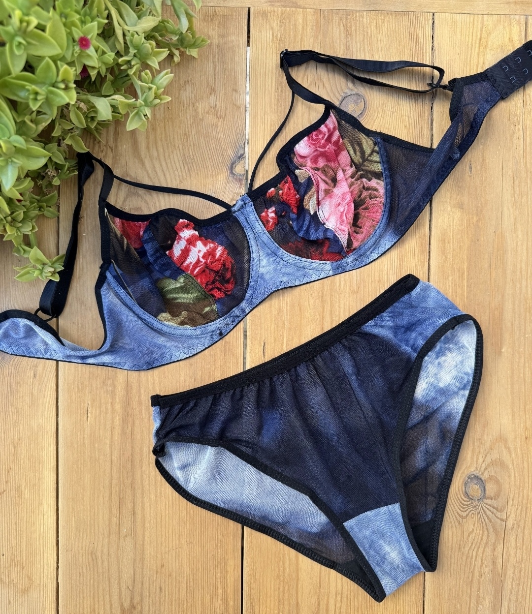 ست سوتین و شورت طرح گلدار گلبهی _ کدF60