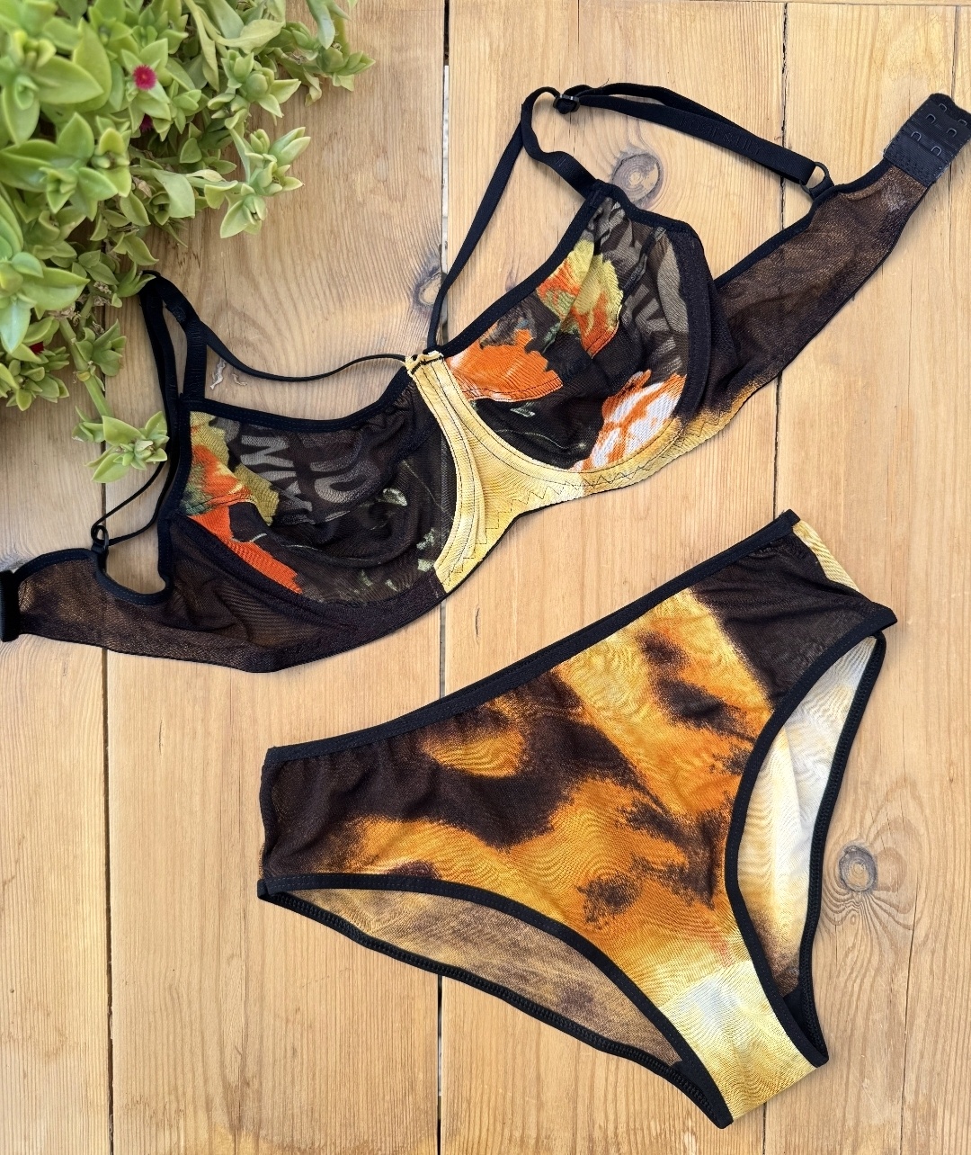 ست سوتین شورت طرح پلنگی طلایی_ کد S4
