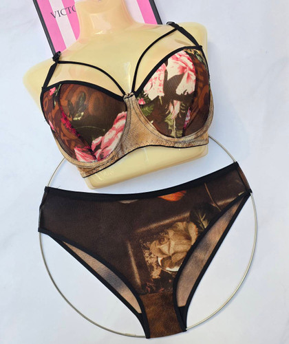 ناموجودست سوتین و شورت طرح گلدار گلبهی _ کدF60